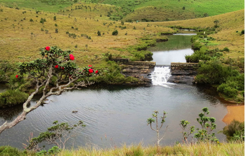 Horton Plains National Park is situated in the Central Province of Sri Lanka of Nuwara Eliya District. It is positioned at the eastern boundaries of the Upper Montane Forest Range (1500m-2524m above sea level) of Central Highland of Sri Lanka. The plateau of Horton Plains which is at a nominal elevation of 2100 m also bears the 2nd and the 3rd highest peaks of Sri Lanka, namely Kirigalpoththa (2389m) and Totupolakanda(2357m). The area of the Horton Plains is 3160 ha. or 31.6 sq. km. and is about 8% of the total upper montane forests and grasslands of Sri Lanka. The rainwater of Horton Plains plateau is drained through tributaries to Mahaveli river to the North (through Uma Oya), Walawe river to the South (through Belihul Oya and Kiriketi Oya) and Kelani river to the West (through Bogawantalawa Oya).